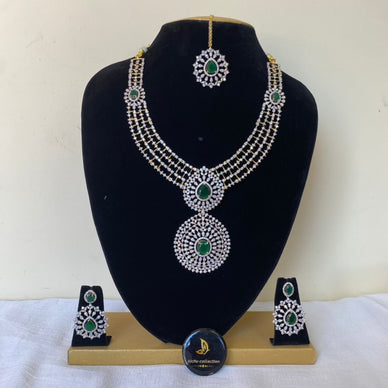 Premium quality AD stone mid haram with earrings & tikka