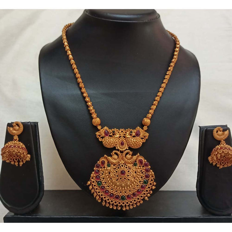 Matte finish peacock pendant necklace with jumka