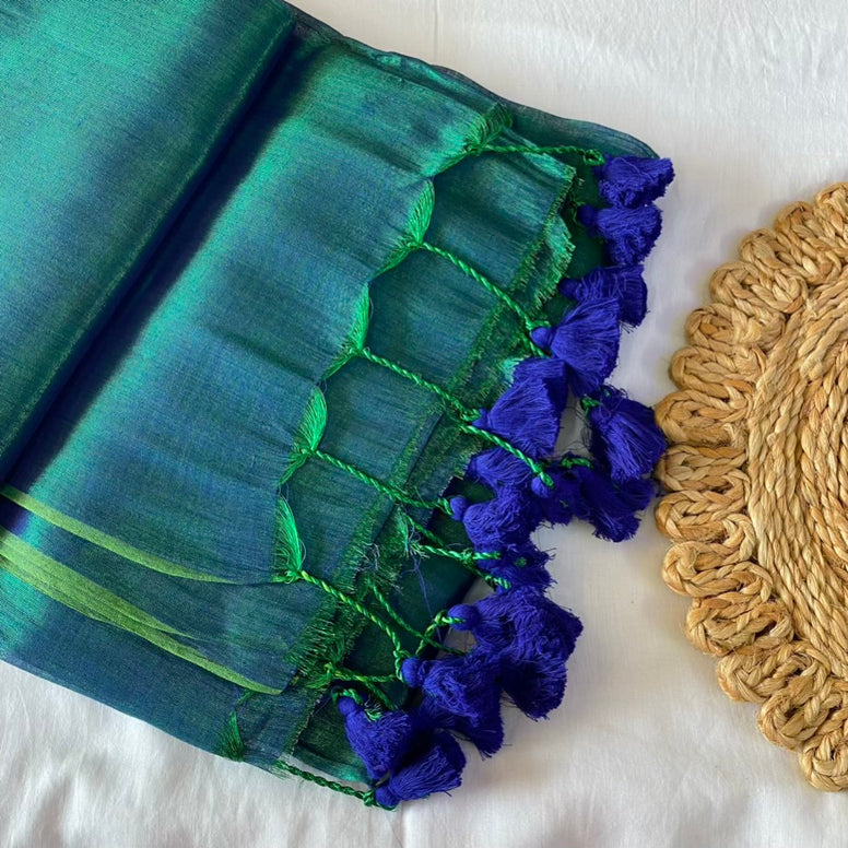 Beautiful peacock 🦚 color soft tissue silk saree.