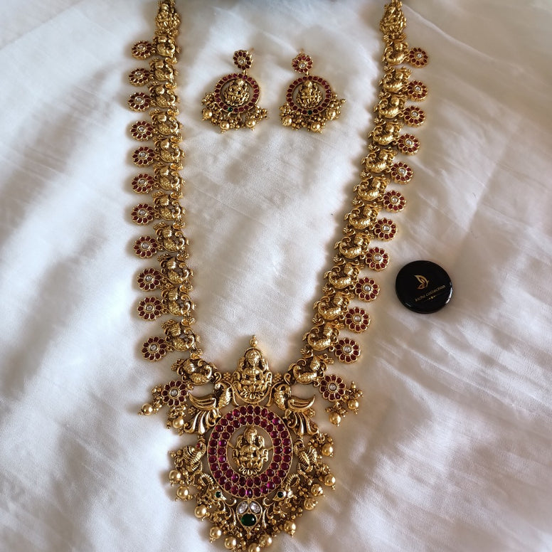 Premium quality Real Kemp stone Antique Nakshi bridal Haram with earrings
