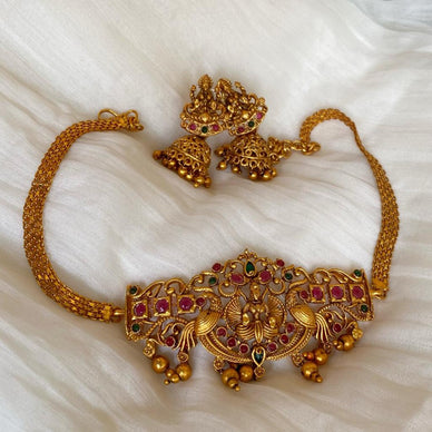 Matte finish mini lakshmi choker with jumka